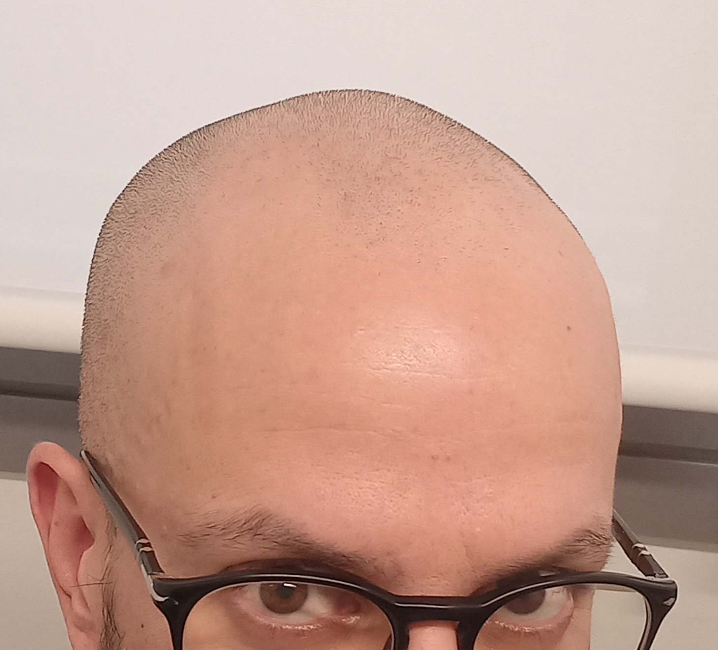 Como te puedes imaginar, con esta calvicie que tengo, me lo corto al cero mí mismo todos los sábados, en casita.