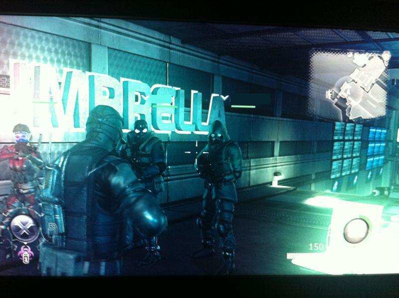 Y así, mientras la horda de zombies se acerca, y nos preparamos para la batalla, Spectre nos dice "eh, venid aquí, al lado del cartel de umbrella un momento!"