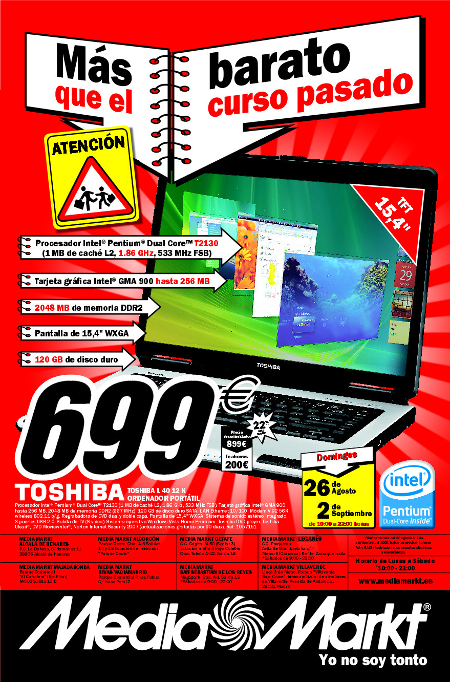 Por 50 leros más puedes encontrar cosas muy apañadas con Tecnología Intel Centrino Duo (con procesador Core 2 Duo muy apañaete)