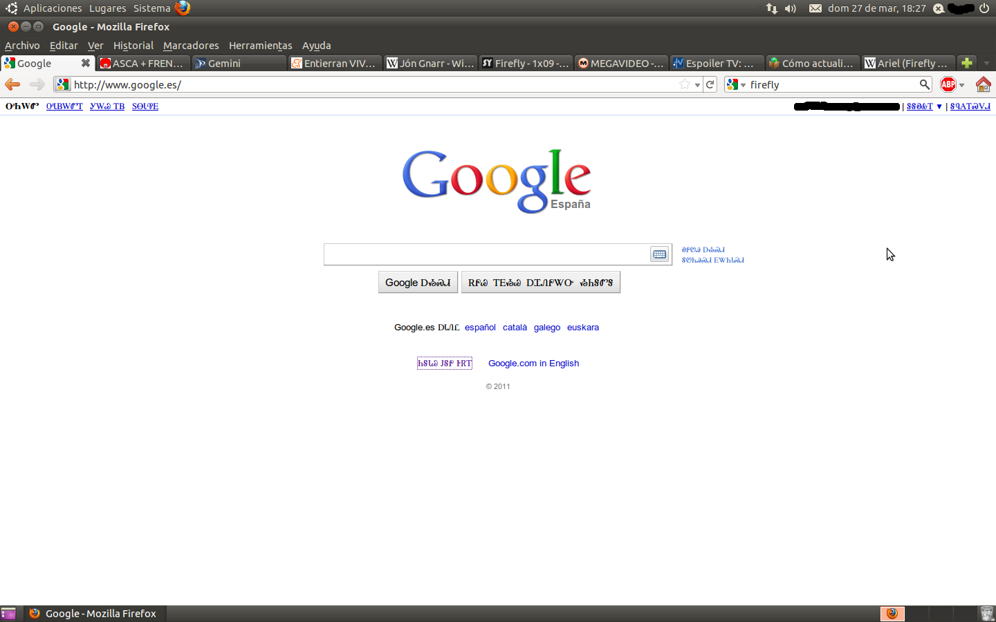 No se si a alguien mas le ha pasado esto, yo me di cuenta ayer en el portatil y lo acabo de ver en el de sobremesa, no se si es cosa de Ubuntu, o de firefox 4 o un chiste de google o que pero me aparece asi, ¿es normal?