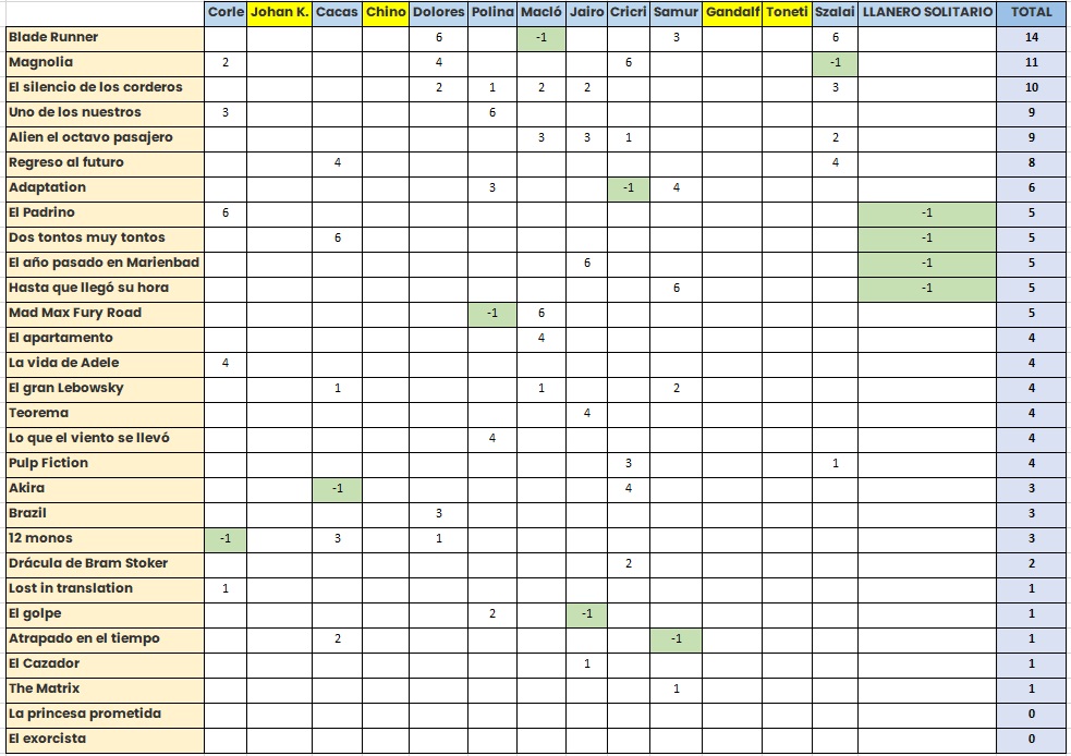 A la última ronda pasarían 10 pelis, alguna más si hay algún empate imposible de deshacer.