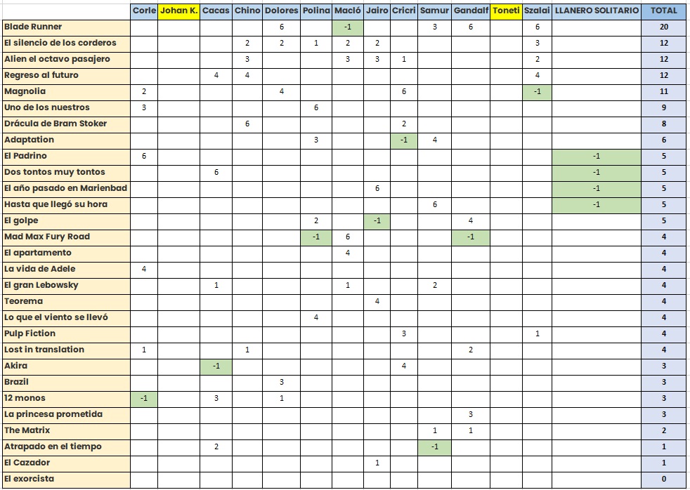 A falta de los votos de Johan y de Tonetis, "Blade Runner" va fuerte.
