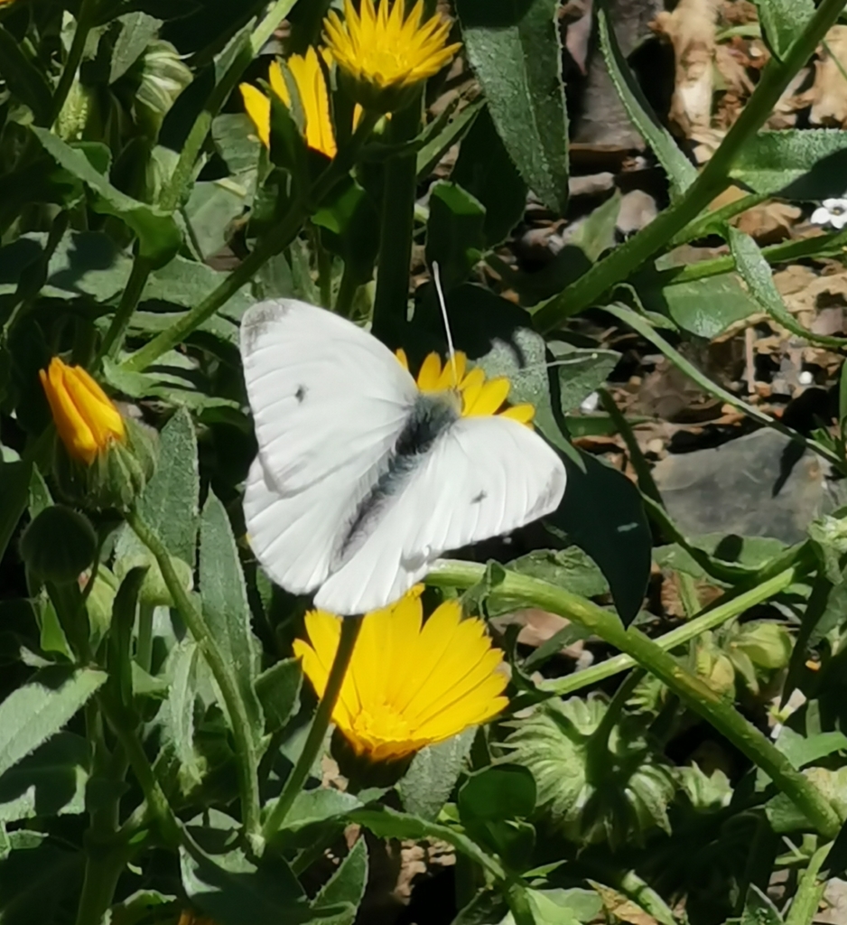 Y luego he conseguido fotografiar una banderitaque es una preciosidad de mariposa, con las alas amarillas menos la parte superior que es naranja. Las fotos son horribles, no para quieta la hijadelasmilputas, y paso de enlazarlas aquí, pero han valido para identificarla porque es muy peculiar. Algún día le sacaré una buena foto.