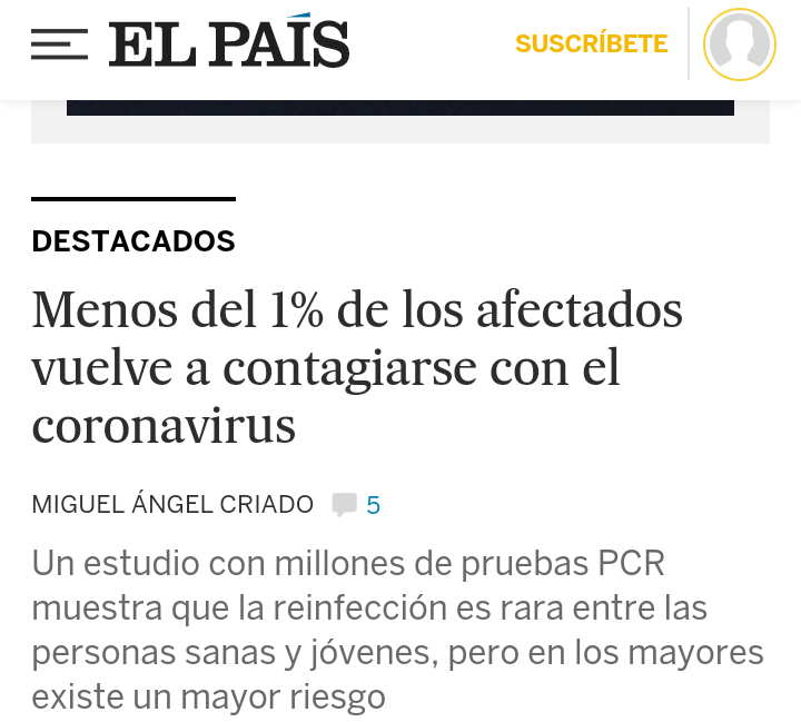 Es que eso de que las personas que lo habían pasado se podían volver a contagiar tampoco es del todo cierto, ¿no?tonetti escribió: ↑17 Mar 2021 10:16 Qué curioso, antes las personas que habían pasado la enfermedad se podían requetecontagiar a las pocas semanas y podían a su vez contagiar a tutipleni pero ahora se esta comprobando que los vacunados ni se contagian ni contagian a los demás.