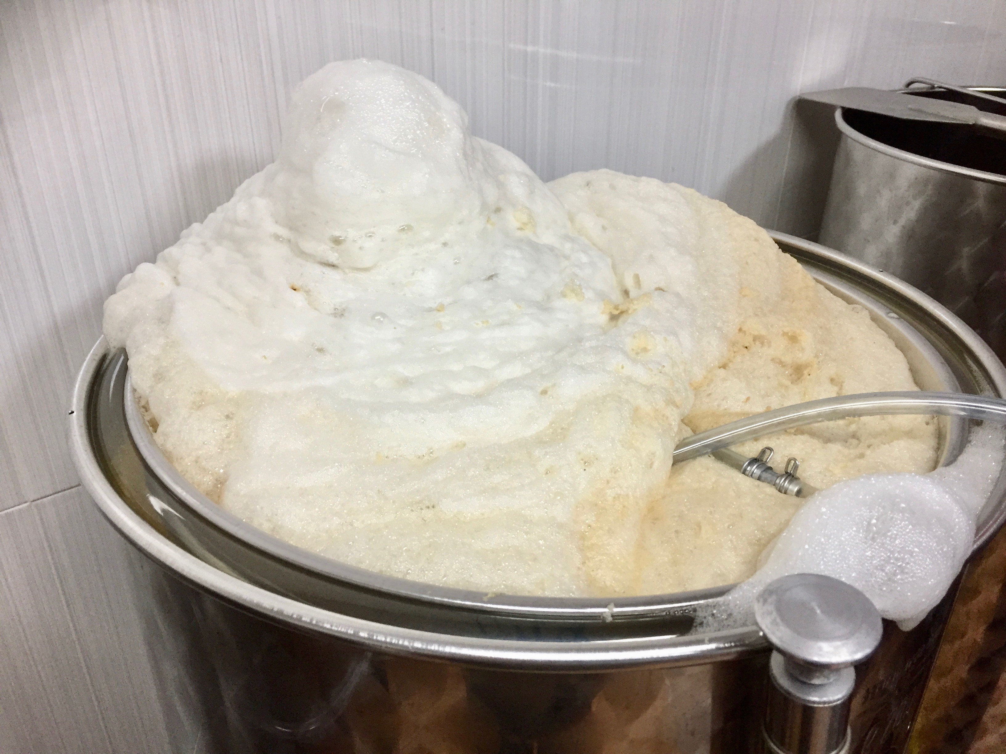 Entramos a la sala de fermentación y efectivamente, me encuentro con la que está siendo la mayor "explosión" fermentativa de mi empresa hasta la fecha: