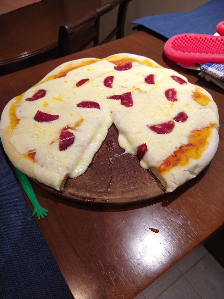 No hay que dejar tópico sin fatigar, porque se enfadan los hados. Además de que el pan recién hecho es otra categoría y a mí me la pela si se ve feo o no. Por otro lado, muy lejos estoy del pan artesanal: echo los ingredientes a la máquina, aprieto dos botones y al rato tengo pan. No tiene pierde. Lo que sí amaso es picsa: