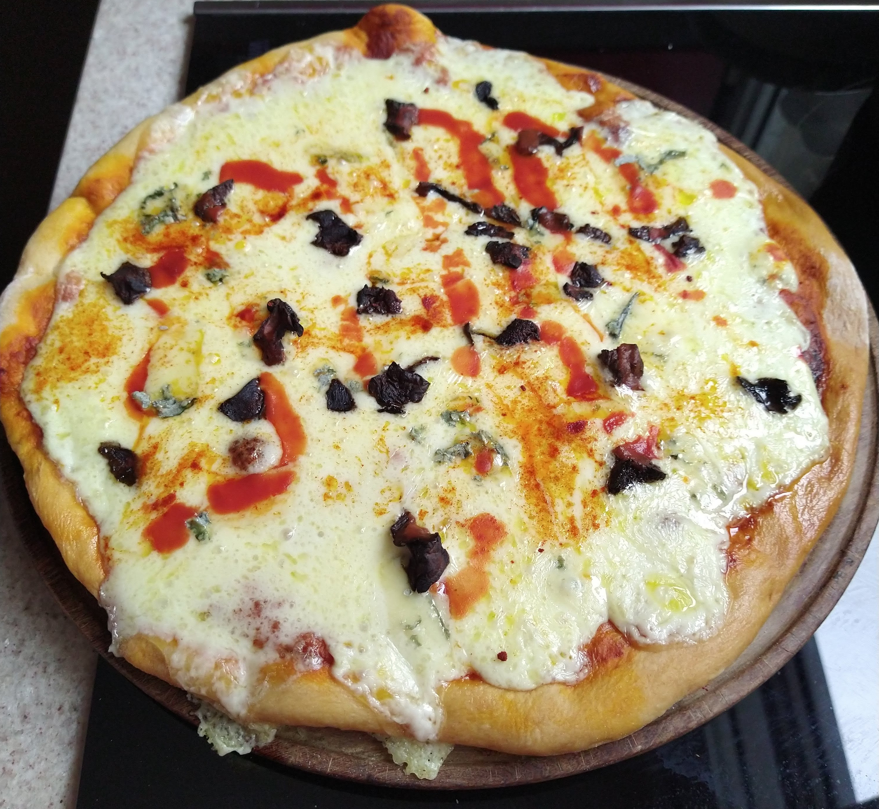 Me aburro. Hice pizza otra vez y ahora le puse colorcitos porque sé que ustedes los aprecian.