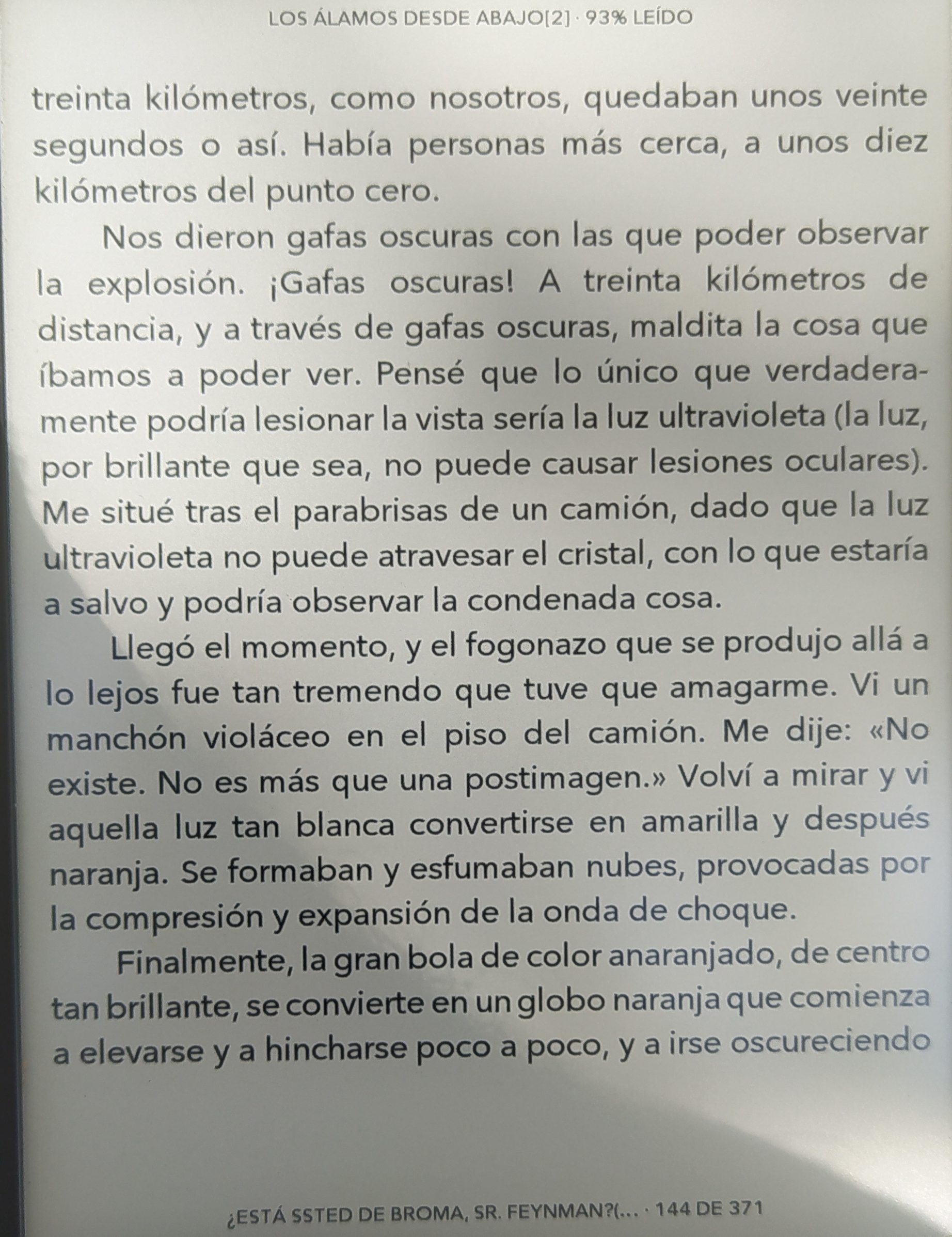Una consulta, todo esto que dice Feynman de que las luz intensa no hace daño a los ojos sino que son los rayos UV y tal es cierto?