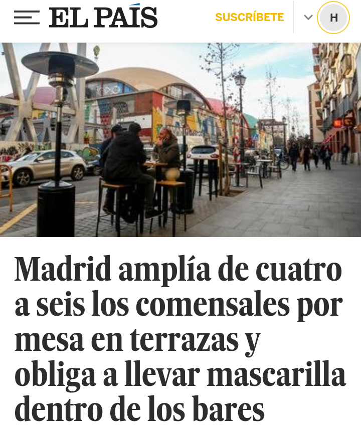 ¿En Madrid no era obligatorio HASTA AHORA llevar mascarilla en el interior de los bares? ¿O hay algo que no estoy entendiendo?