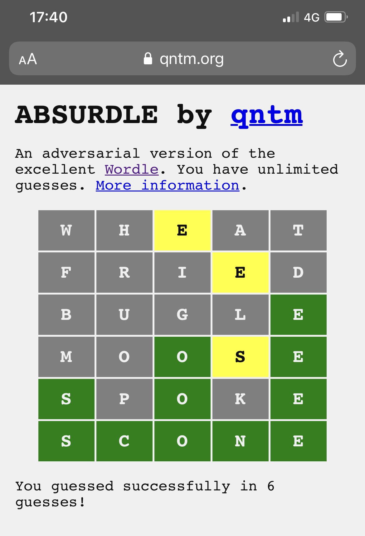 wendigo escribió: 14 Ene 2022 10:37 El wordle en inglés de hoy no sé por dónde cogerlo.