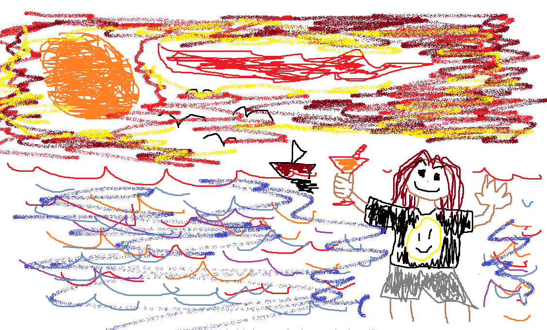 Ahí estoy yo, en Tossa de Mar, disfrutando de un Aperol Spritz con la puesta de sol de fondo. Tengo que explicarlo porque el dibujo me ha quedado especialmente feo. Pero me hacía gracia participar.