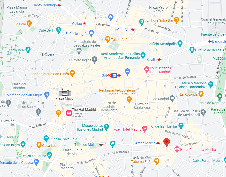 Justo en ese mapa, en la esquina inferior derecha, está el mercado de Antón Martín donde está uno de mis sitios preferidos de Madrid, el Doppleganger, que roza ese precio, quizá un poco más si os empeñáis en probarlo todo.