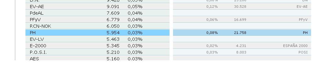 El PH es el partido humanista. El de Eva Hache es efectivamente el de 0 votos, ya que ayer retiro la candidatura.