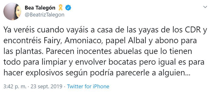 The last samurai escribió: 25 Sep 2019 16:50 Van cayendo las acusaciones. Ni tenencia de explosivos, ni rebelión (por Dios!), ni sedición.