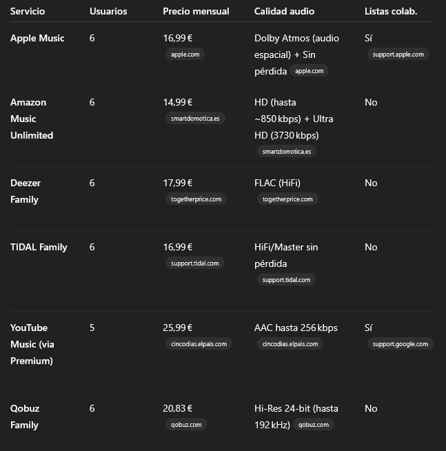 El spotify vuelve a subir el precio del plan familiar. En mi grupo por fín, aprovechando la coyuntura, se ha planteado cambiar de plataforma, a ver qué sale de esta. Hemos quedado en darle un tiento a algunos servicios y creo que voy a intentar Tidal y/o Apple Music (aunque uso android y windows).