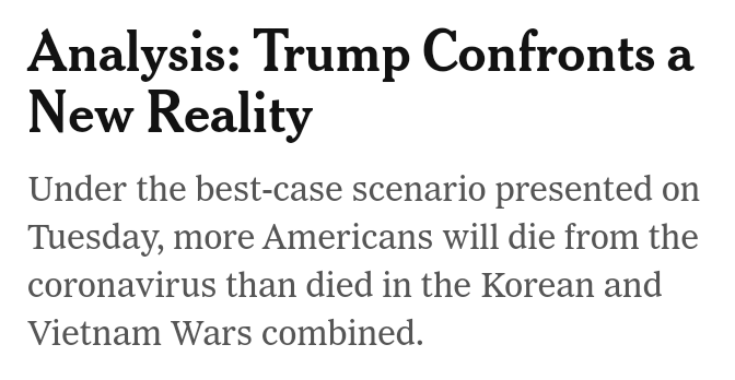 Llevo 8 o 9 días entrando a la web de The New York Times (y antes, también) para ver cómo cubrían la noticia del covid19, y apenas salía nada, salvo pequeñas noticias sobre la movida en España e Italia, como si a ellos no les fuera a llegar y con el rollete de "la gripe española de 1918".