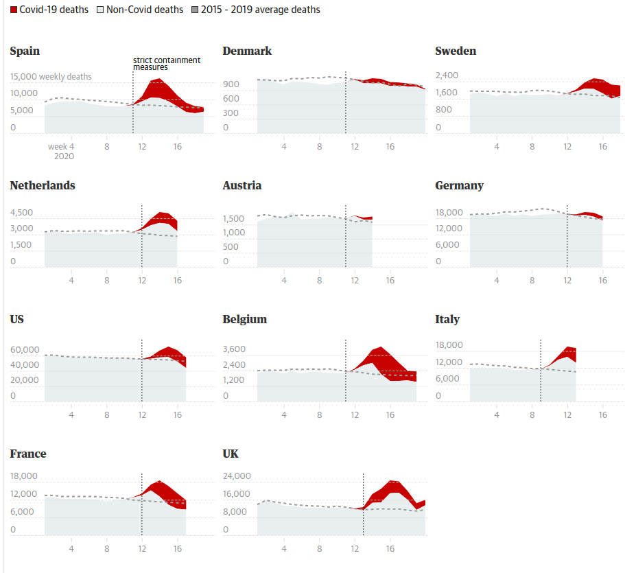 Doctor Beaker escribió: ↑01 Jun 2020 16:33 Yo creo que contar como muertos por coronavirus a los que se produzcan de más sobre la cantidad normal para la época del año no es mala métrica, e incluso es a la baja porque todas las enfermedades infecciosas se transmiten menos y ni te digo lo que bajan los accidentes de tránsito. Esa métrica da bastante fatal también.