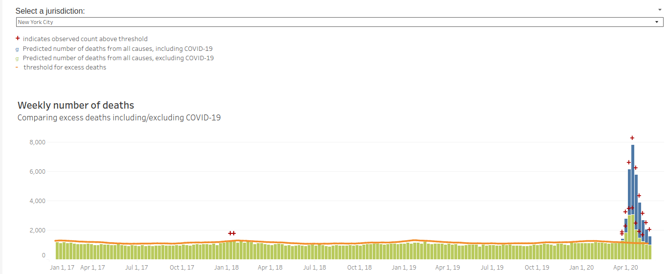 Acá se ve que el corona incluso te mata aunque tengas otra cosa, por el colapso del sistema de salud, pero además son los muertos en todo el país, donde el peso de las grandes ciudades se diluye un poco.