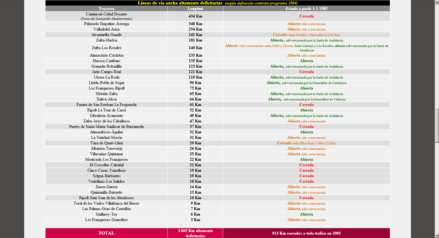 Al hilo de lo que he comentado de los cierres hechos en 1985 de las lineas deficitarias casco tabla sacada de WEFER.com.
