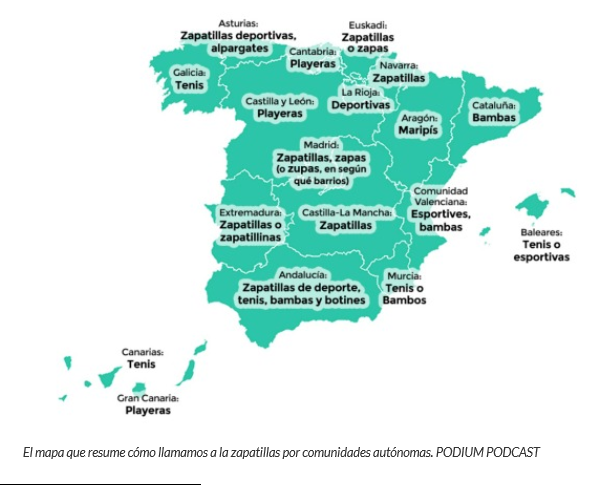 Playeras: aunque lo parezca el término no es relativo a la “playa”. Su etimología proviene del inglés, del verbo jugar: “play”. Se utiliza mucho en el norte y en Canarias.