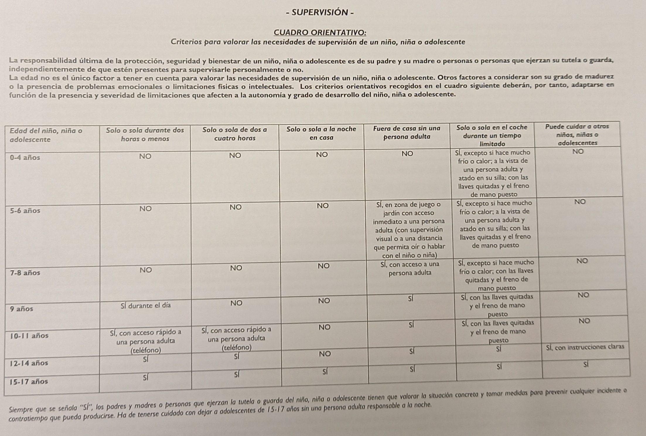 Nuestro instrumento para valorar la desprotección de menores dice lo siguiente en el indicador "Supervisión":