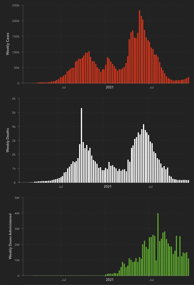 Es el virus, que no se queda quieto. En realidad la vacunación ha servido un montón en Argentina: en invierno los contagios bajaron a casi nada y no habrá sido porque el virus tuviera frío. Ahora están volviendo a subir y digo yo que será en parte por variantes nuevas y en parte porque la gente ya está medio harta y se junta y ya, si total están vacunados y coso. Estimo que lo que terminará pasando es eso, que si no hay mucha gente hospitalizada será un siga siga, pero para eso hay que tener vacunada a la gente porque si no después hay mucho olor a muerto en la calle.
