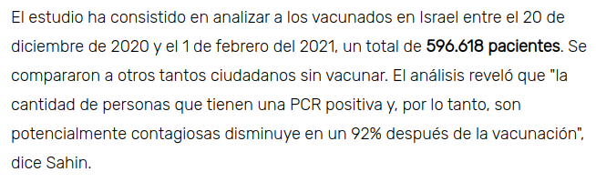 Onvre, es que con las vacunas hay que tener en cuenta que las expectativas han ido cada vez a menos. Empezaron con que tenían un 95% de efectividad, luego que evitarían el contagio y la expansión del virul, luego que no evitaban el contagio pero que no tenterabas, luego que aunque estubieses vacunado podías contagiar mas o menos como si no, luego que ya casi que no sirven para mucho si no se pone otra dosis de recuerdo, AL FINAL VAN A CONCLUIR QUE SON BUENAS CONTRA LA ACIDEZ DE ESTOGAMO Y POCO MÁS...