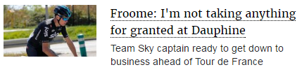 Con lo cual parece que Sky nunca ha abandonado la poción mágica tras los escándalos de los TUEs, si no que sólo la reservaba para la competición reina. No hay nada que haga presagiar que alguien deba malgastar un minuto de su vida en ver este Tour si lo que le motiva es saber cuál será el ganador final, pero aún y así veré alguna que otra etapa por motivos completamente distintos, porque esto se lo lleva Froome sí o sí. ¿3 Sky entre los 10 primeros en la crono que abre la carrera? No hay nada más que evaluar.