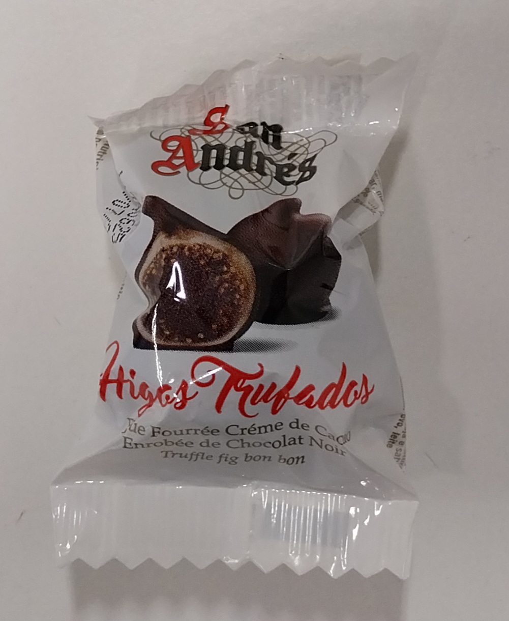 Estoy en fase de atocine (he cogido 7 kilos en pocos meses) por motivos variados, y siempre me han gustado los frutos desecados (uvas pasas, ciruelas pasas, higos, mango...) y he descubierto en Eroski una mierda navideña que sospecho que solo compro yo: higos recubiertos de chocolate.