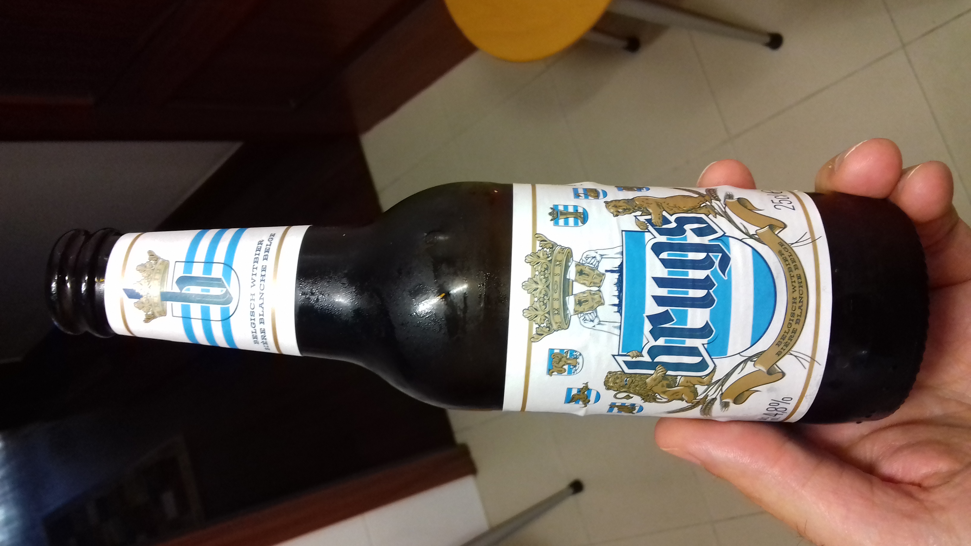 Muy suave, como afrutada pero no demasiado, poca graduación alcoholica, entra sola, y 25 cl., podría se perfecta candidata a cerveza "de diario". Blanca belga.