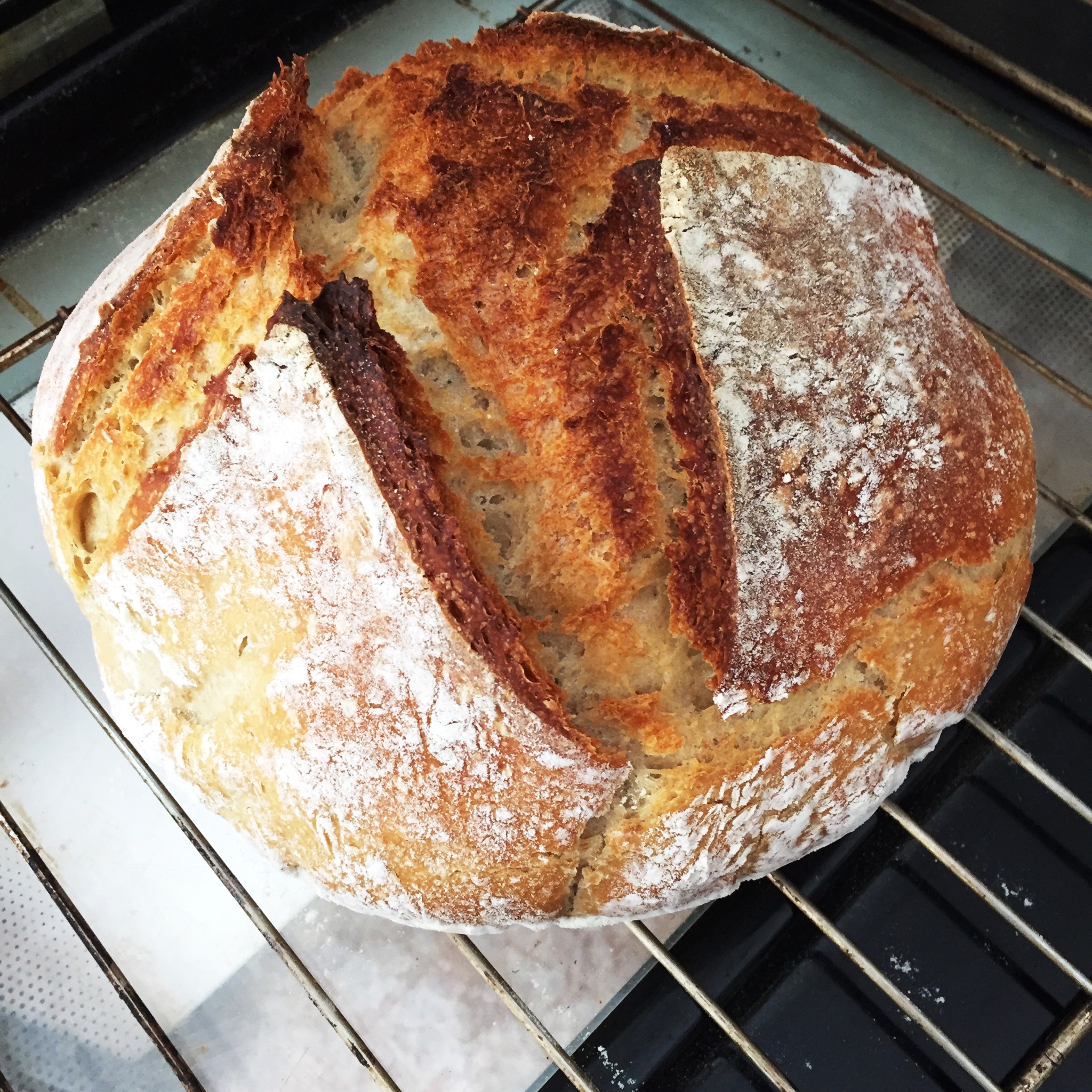 Yo lo he tenido (sin cazuela ni cocotte) a 250 al principio (con vaso de agua evaporada en bandeja debajo, como en el vídeo, y luego a 200, pero creo que con 220 me habría quedado más dorado. Pero vamos, la corteza cruje, la miga está esponjosita pero densa a la vez... está rico. A ver si la parte más interna del bolo no está cruda, eso sí.golondrino escribió: ↑02 May 2020 10:48 De normal el pan se cocina sobre los 220. Yo he puesto el horno a todo lo que da, en teoría 250, cuando he levantado la tapa de la Cocotte las puntas de las greñas estaban doradas y ya he terminado a 200-220.