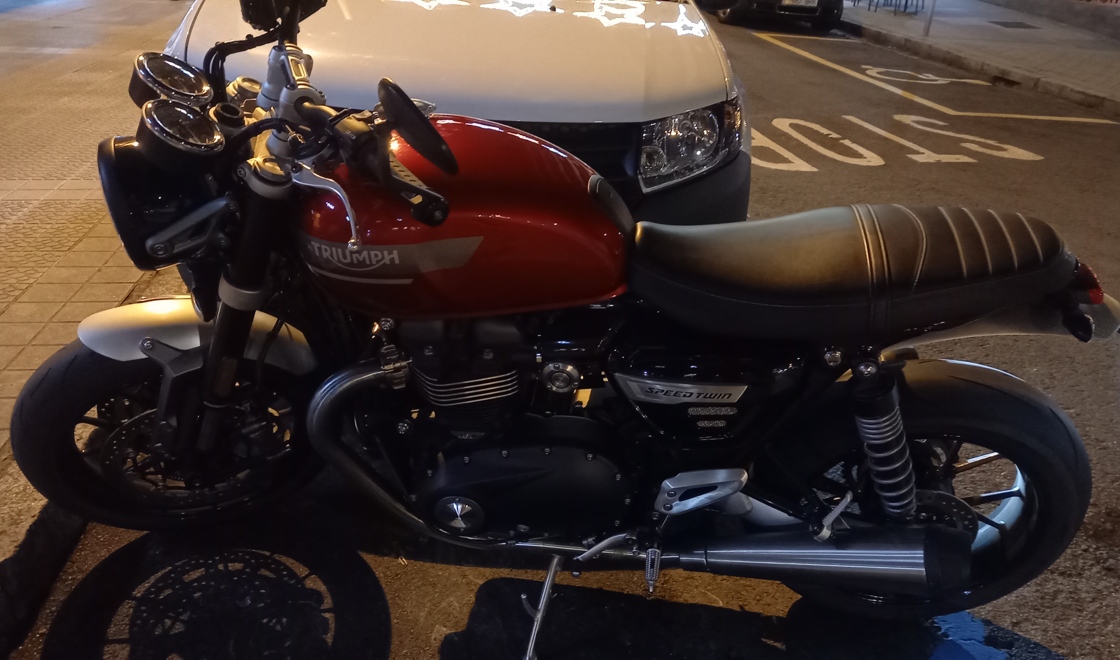 Justo hoy he estado en el concesionario. He tenido golpe de suerte porque tenían una Speed Twin de ocasión (del mismo vendedor del concesionario, se ve que cambian de moto cada año o asi) en negro y he podido probar esa, en lugar de la t120 que iba a probar. Sobre el color yo tiraba más para el negro y el vendedor me ha dicho que hay gente que se arrepiente de comprarla roja, no le he pedido detalles pero entiendo que no será un color muy agradecido.M. Corleone escribió: ↑19 Dic 2022 19:23 @wendigo, como no te la compres en rojo guinda y optes por el naranja (bonita PERO MENOS) te mato. Qué obra de arte, estoy a su lado ahorita mismo y se me cae la baba: