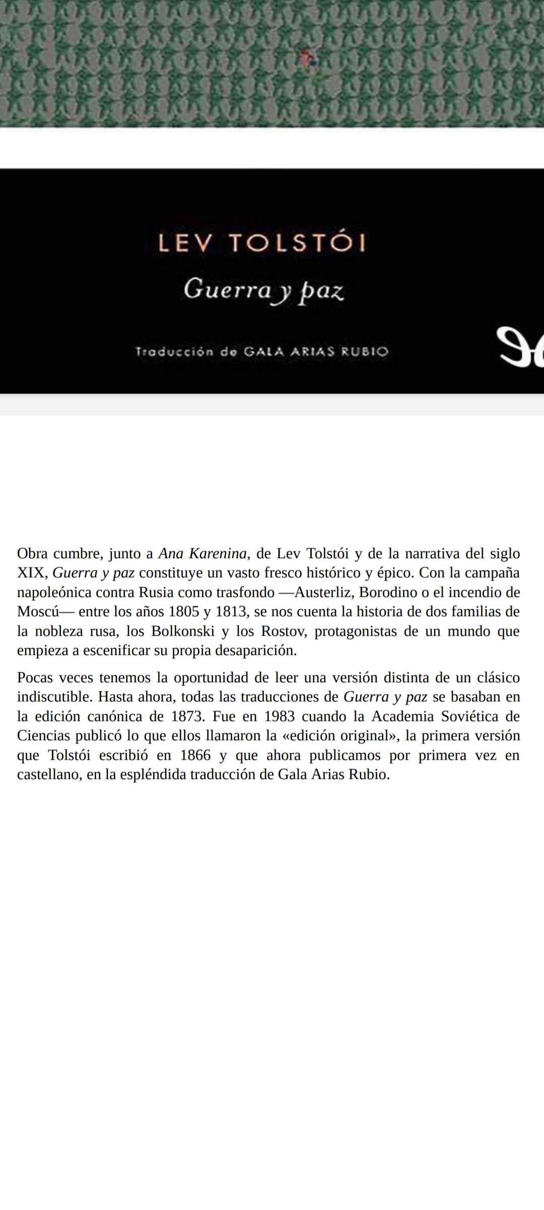 Pues no tengo ni idea, no me he leído "Guerra y paz". Vi la serie de la tele y ya.