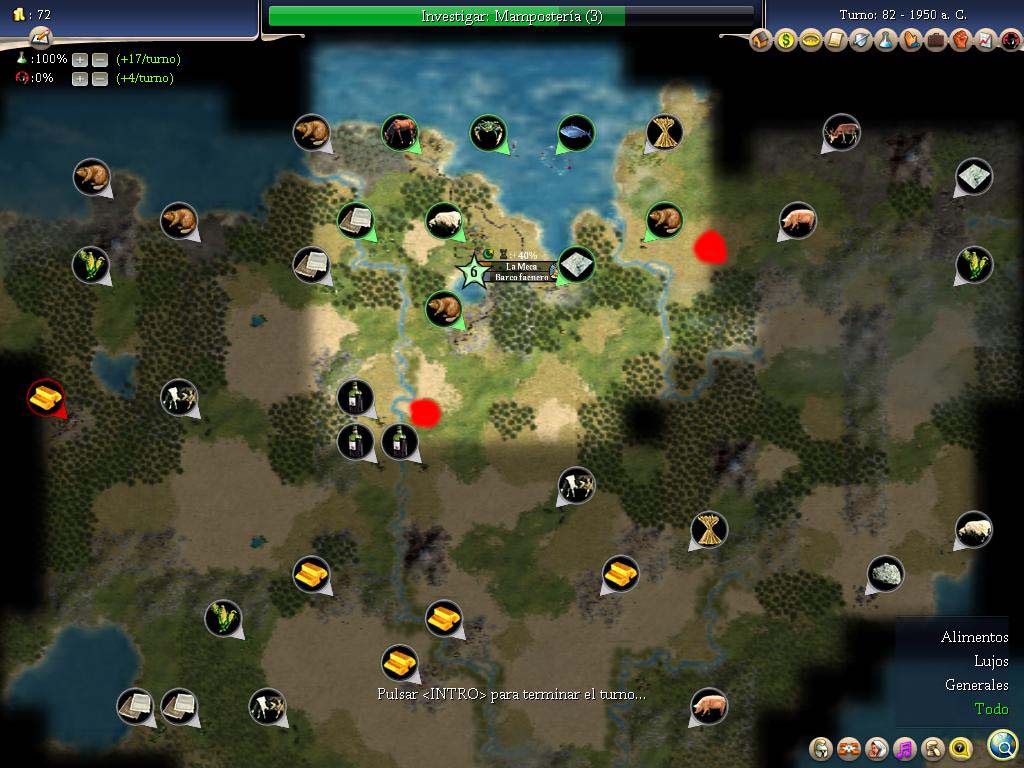 49: Ganadería investigada. Le doy a la caza, que todavía los bárbaros nos harán el owned. Al sudeste, en la península, está el imperio holandés, en mitad de la selva de los leones.
