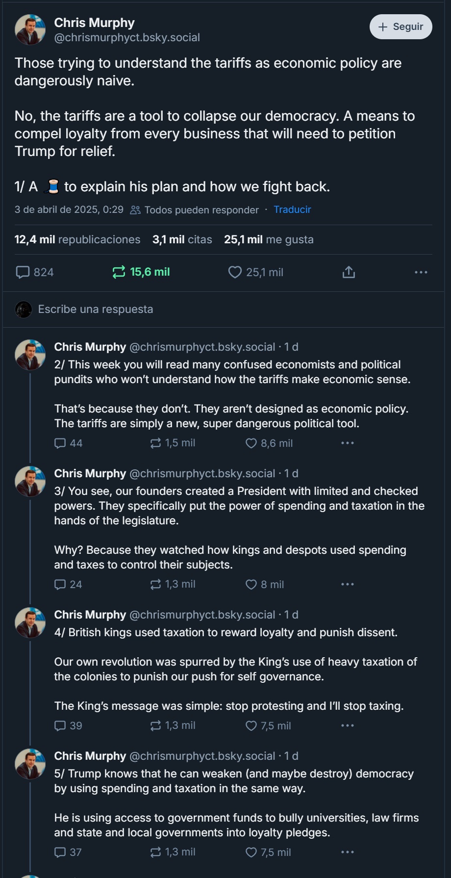 Que actualización tenemos?, estoy un poco desconectado estos días.Chino escribió: ↑07 Abr 2025 12:01Hoy John Smith de Alabama quizá esté empezando a rascarse la cabeza por debajo de la gorra de béisbol.Chino escribió: ↑03 Abr 2025 14:31