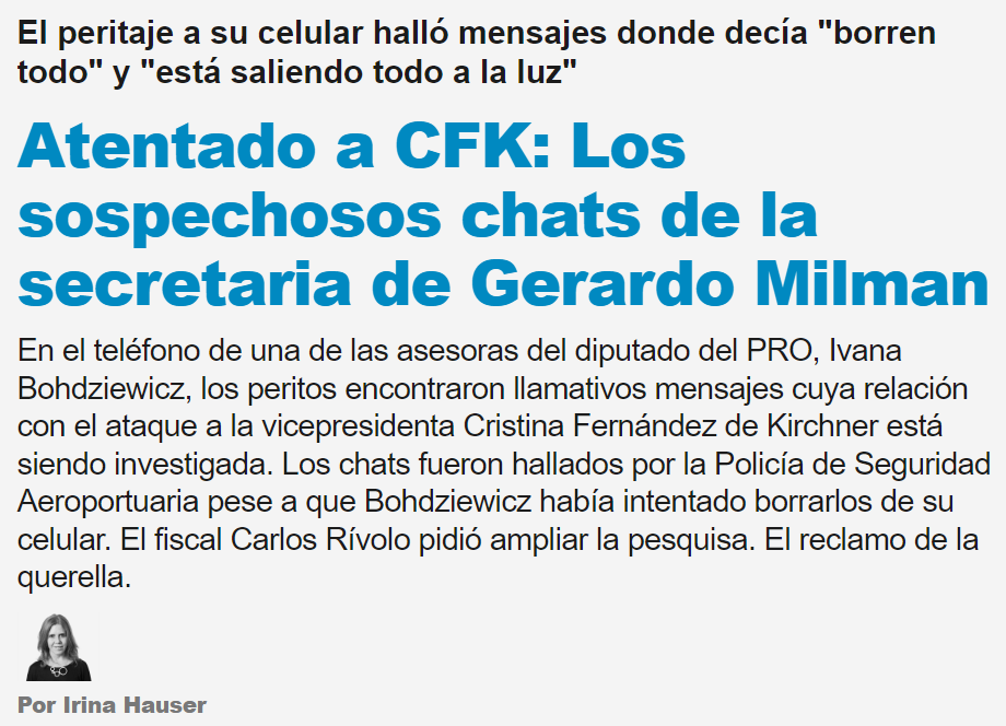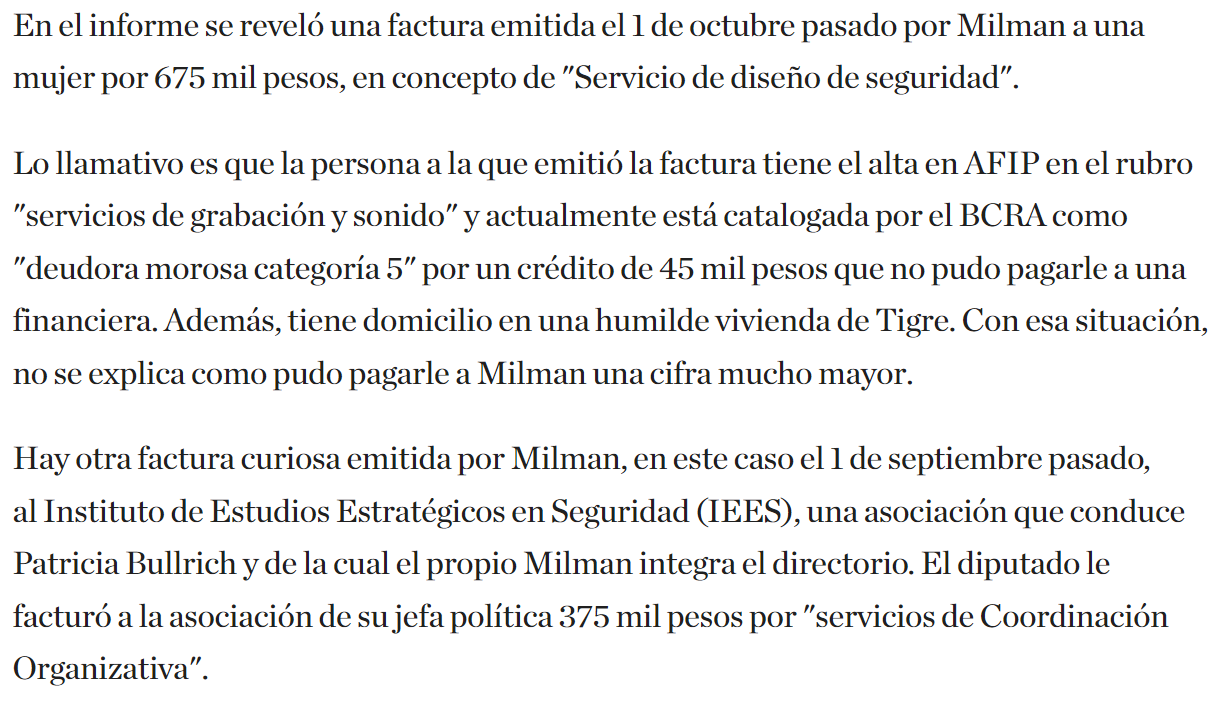 No sé, estás hablando de los diputados del Pro? Veamos las aventuras de Gerardito el Picarón, mano derecha de Patricia Bullrich aka la Ministra Pum Pum: El muchacho fue denunciado justo después del atentado fallido contra CFK porque algunos días antes alguien lo había oído decir en un bar "cuando la maten yo voy a estar rumbo a la Costa". Esa investigación está todavía en curso y eso, pero empezó a saltar pus por todos lados: que si espías fantasma, que si asesoras que lo asesoraban sobre el Kama Sutra, que si facturas a indigentes, que si "euforia constante", en fin, un hombre de bien. Pero lo más mejón llegó hoy fresquito: en uno de los celulares de las asesoras encontraron que había mensajes borrados mucho comprometedores. Y estamos hablando de la mano derecha de la Presidenta del partido, pero bueno, cosas que pasan. Al jefe de campaña de Larreta (el otro competidor por la presidencia de parte del PRO) le pasó lo mismo, yo no sé si se están devolviendo favores o qué.