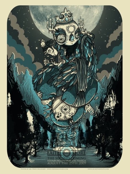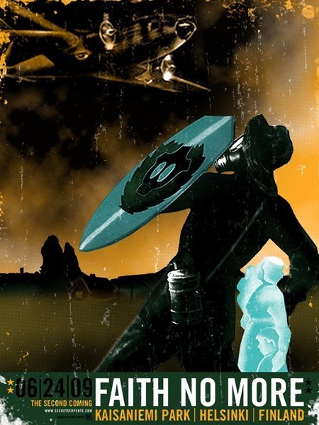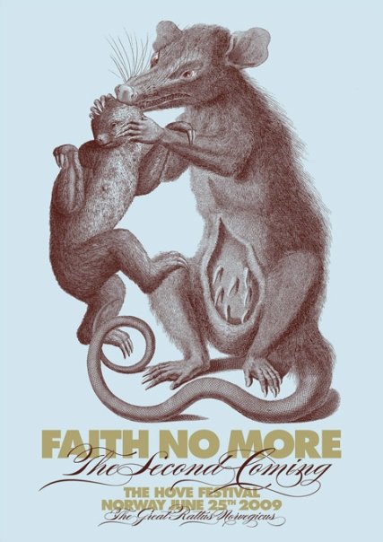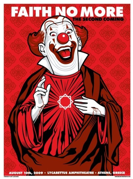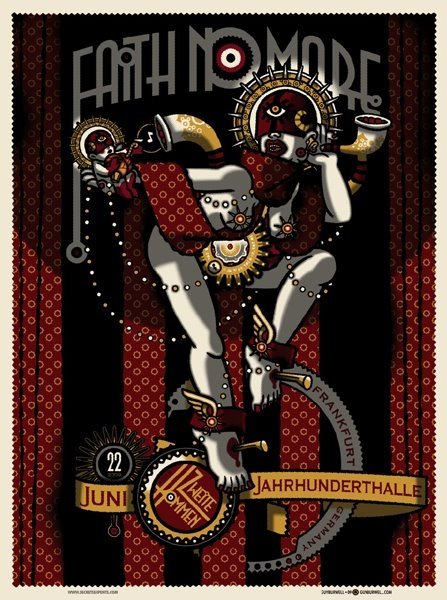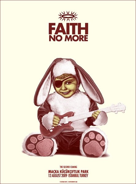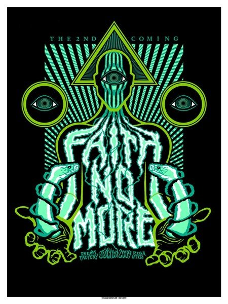 Acojonantes los carteles que se han sacado los Faith no More para el tour de su regreso, uno por ciudad.