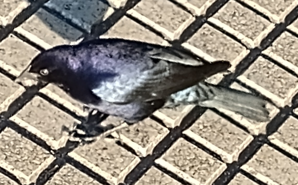 Eran unos cuantos y estaban en la vereda de una plaza; a lo mejor me llamaron la atención porque en general en Buenos Aires sólo se ven gorriones y palomas. La foto no le hace justicia, era más azul y más metálico y parece ser un Molothrus Bonariensis.