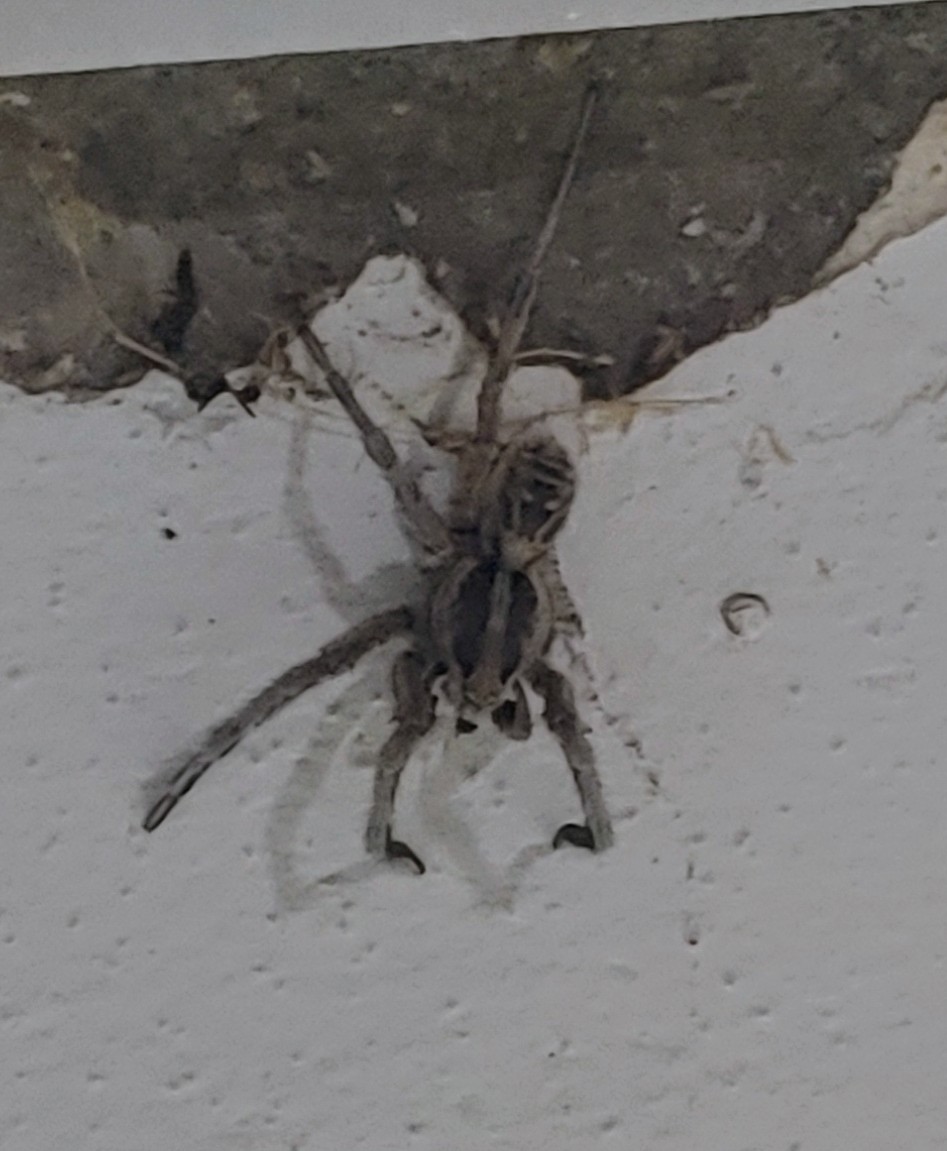 La arañuca era bastante grande ( como 7 centímetros el cuerpo, sin las patas) y parece que le faltaban patas (aunque a veces las recogen de manera rara). No creo que por aquí haya tarántulas, pero se parece un poco. Me pido un lanzallamas en amazon?
