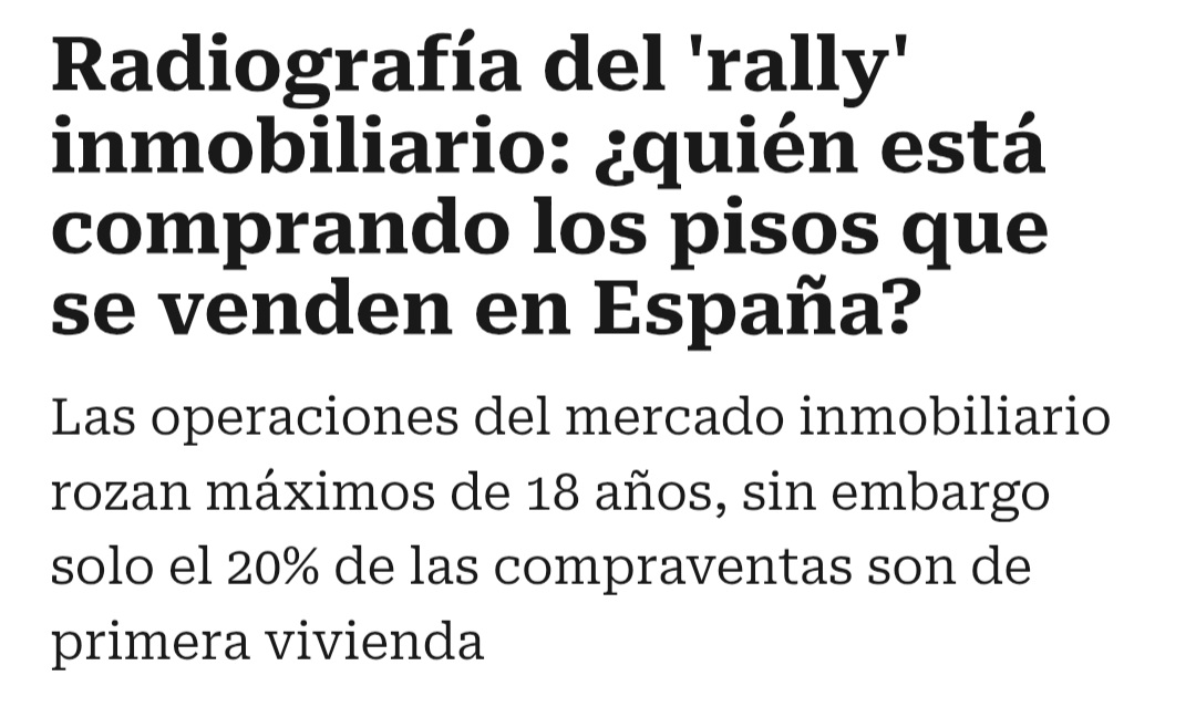 ¿Esos datos tendrán en cuenta la compra de vivienda por parte de extranjeros? Porque hace 20 años era raro ver extranjeros fuera de los sitios más grandes y famosos, pero ahora hay extranjeros hasta en el pueblo más pequeño (al menos, en la costa, claro).rianxeira escribió: ↑26 Jul 2025 20:24 https://www.xataka.com/magnet/espana-ha ... e-disparen