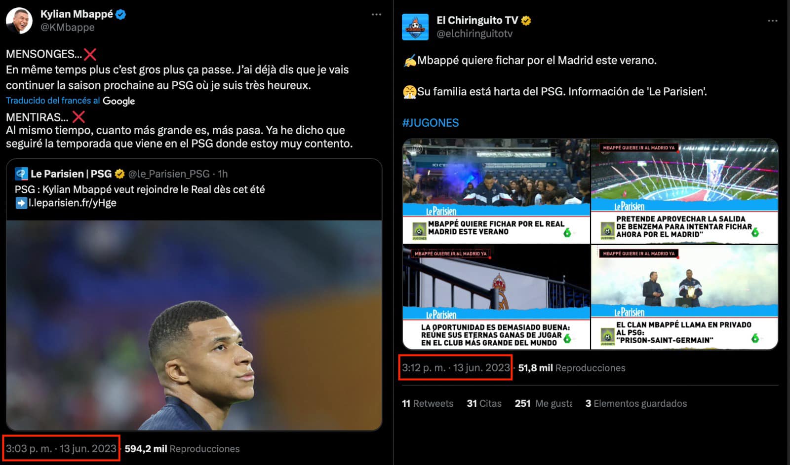 Ha estado grachiocho, porque Mbappe ha publicado el desmentido menos de 10 minutos antes de que el programa de Cocarol de mediodía hiciese un especial sobre THE CULEBRÓN MBAPPE 2023: