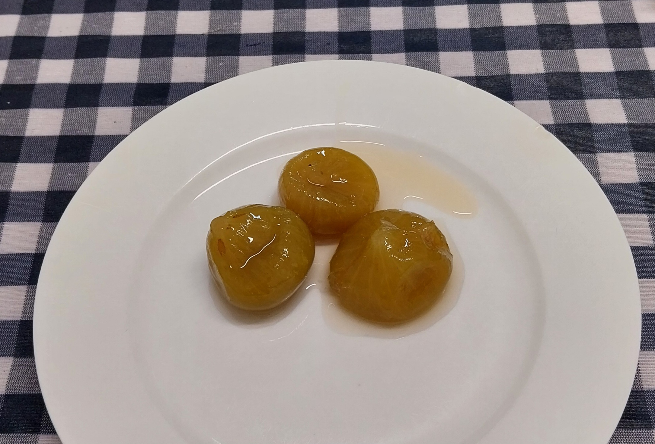 Los lavas, los pones con el rabo para arriba en la cazuela, echas azúcar (no la mido, como cubrir la base), una cucharada de miel y agua hasta que cubra todo menos la base. Una rodaja de limón (que queda también confitada y me la como). Si eres muy sibarita con el tema amargor, quítale la parte blanca a la piel del limón. Yo la pongo a lo bestia.