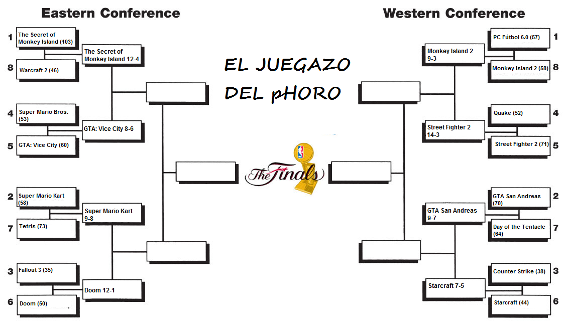 Bueno, señores, la cosa queda tal que así. Los numeritos tras cada juego indican por qué cantidad de votos ha pasado cada uno en comparación con su rival: