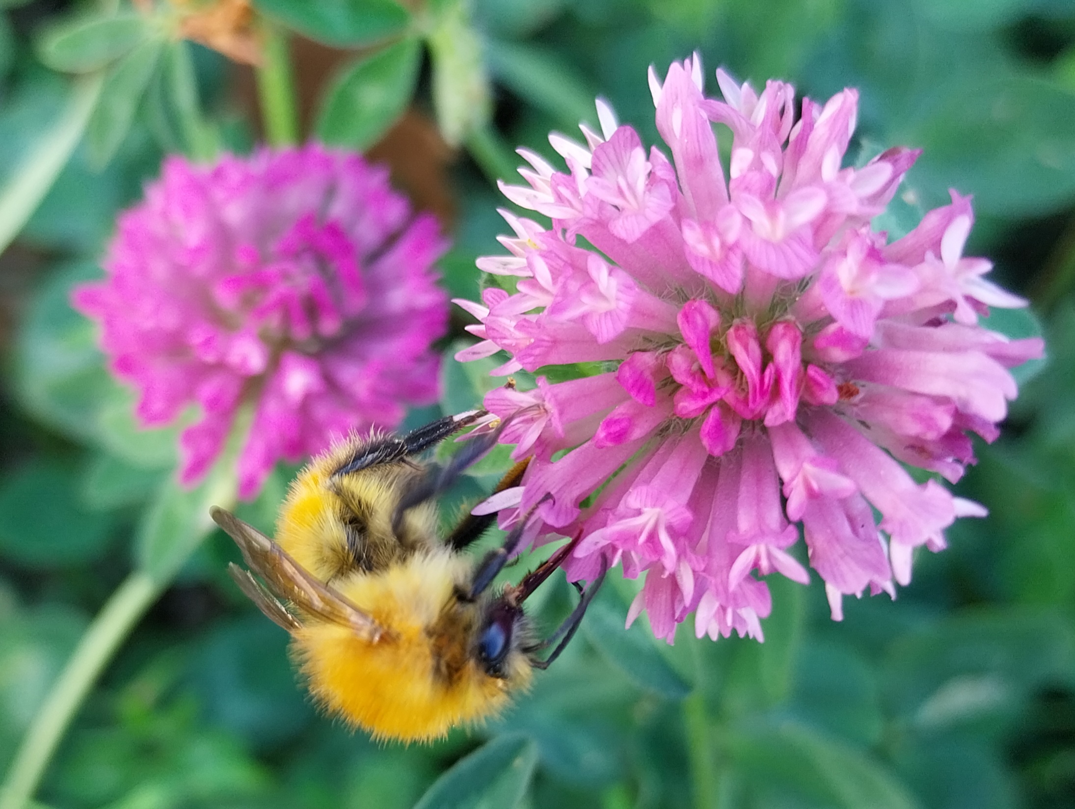 Abejorro de campo libando polen, visto mientras espero a la grua:
