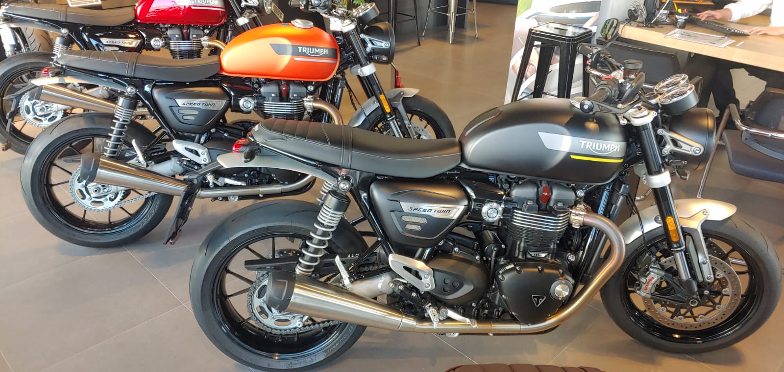 Justo hoy he estado en el concesionario. He tenido golpe de suerte porque tenían una Speed Twin de ocasión (del mismo vendedor del concesionario, se ve que cambian de moto cada año o asi) en negro y he podido probar esa, en lugar de la t120 que iba a probar. Sobre el color yo tiraba más para el negro y el vendedor me ha dicho que hay gente que se arrepiente de comprarla roja, no le he pedido detalles pero entiendo que no será un color muy agradecido.M. Corleone escribió: ↑19 Dic 2022 19:23 @wendigo, como no te la compres en rojo guinda y optes por el naranja (bonita PERO MENOS) te mato. Qué obra de arte, estoy a su lado ahorita mismo y se me cae la baba: