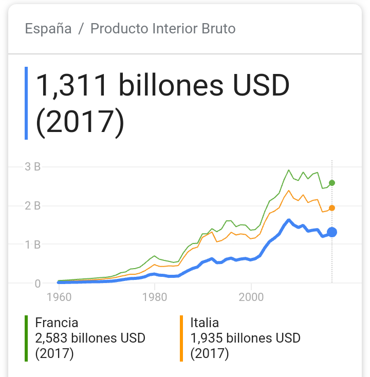 Ayer miraba este gráfico y me daba la sensación de que da un poco igual quien gobierne, porque los tres países comparados se comportan exactamente igual en cuanto al PIB a lo largo de más de 50 años, con diferentes gobiernos cada uno...