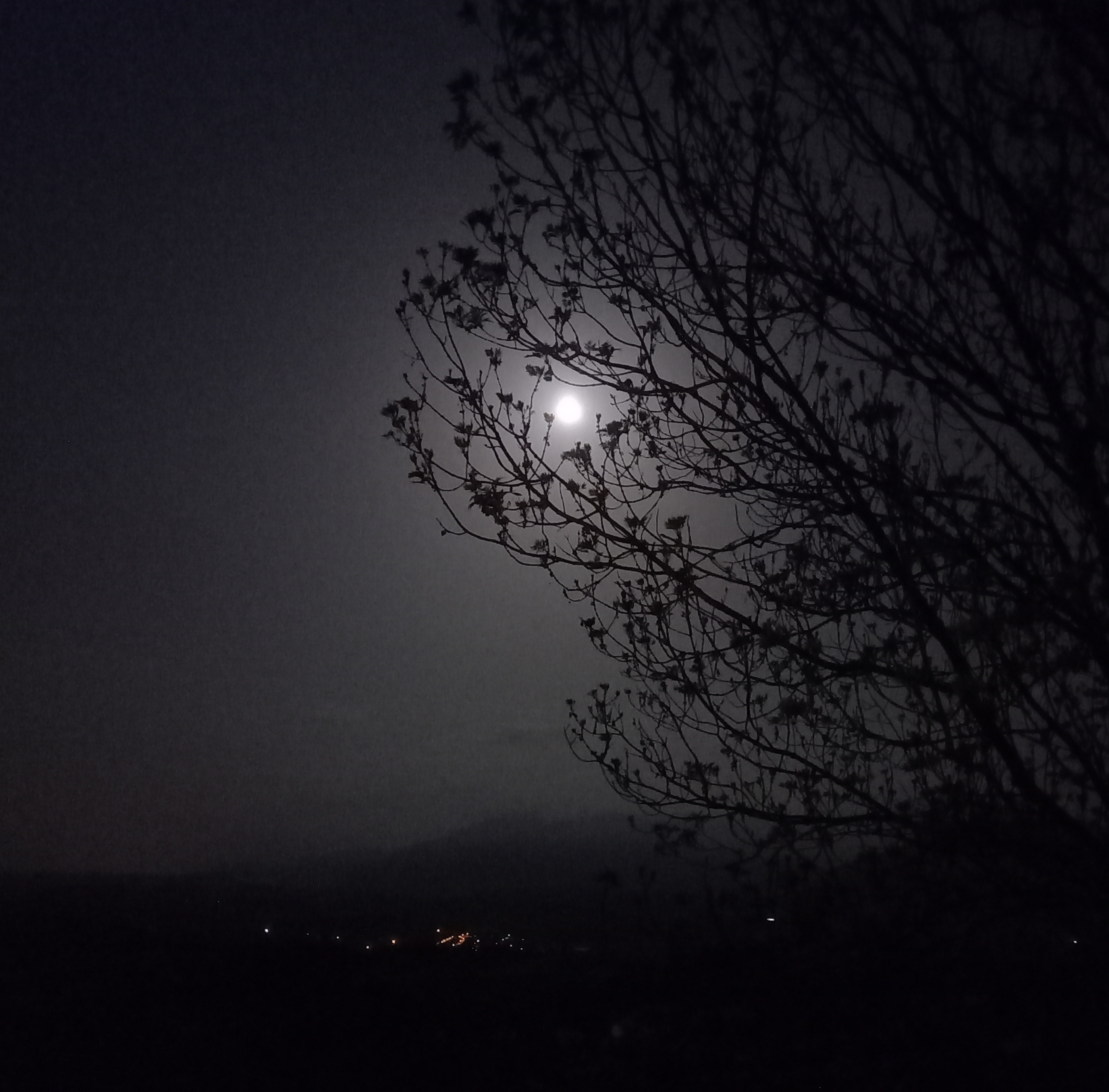 Desde el sofá (la casa tiene una pared-ventana que se retira del todo), ahora mismo (20:53 de la noche):