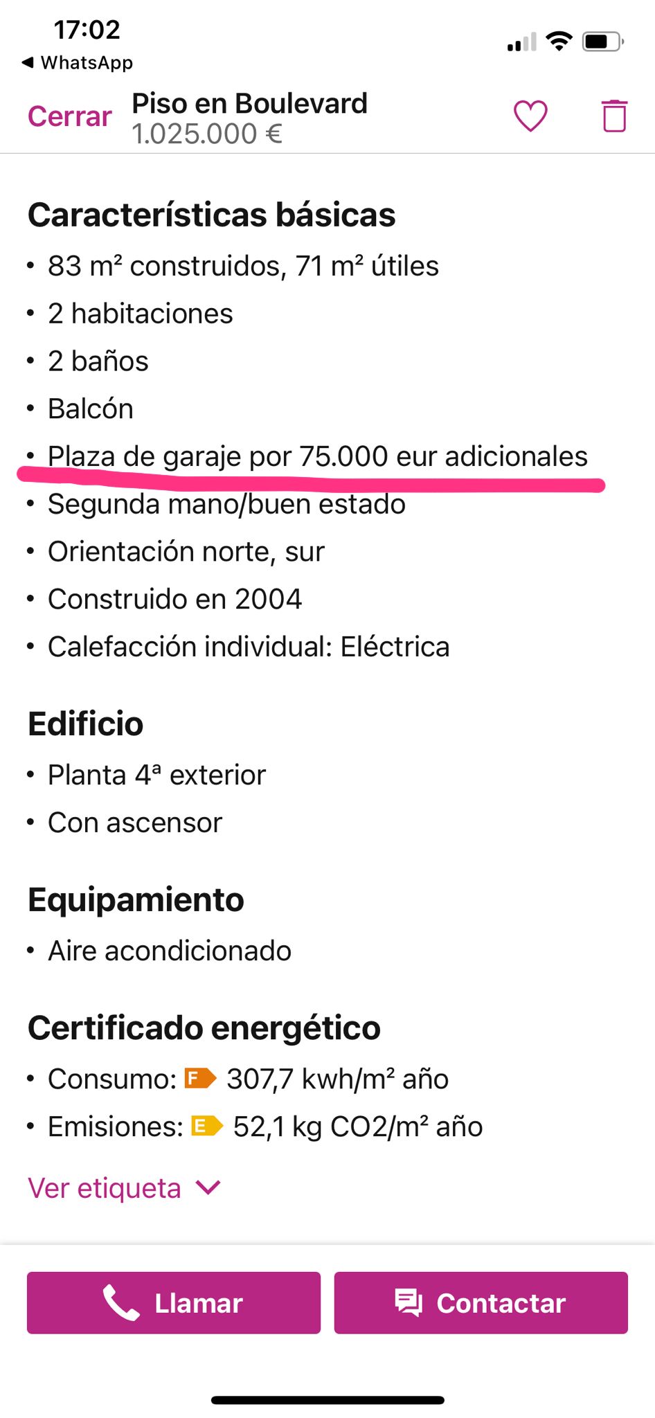 Pero que alguien pague 75.000 euros por una plaza de garaje me flipa, y más en un contexto en que no sabemos cómo será la movilidad y el furo del coche en unos años.