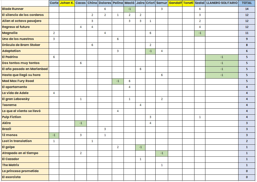 A la última ronda pasarían 10 pelis, alguna más si hay algún empate imposible de deshacer.